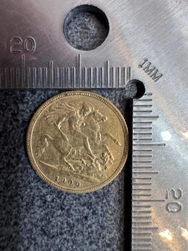 This is a 1900 Victoria half sovereign. The reverse was designed by Benedetto Pistrucci and features St George and the Dragon. These graded gold sovereigns have numismatic value over their gold intrinsic value.